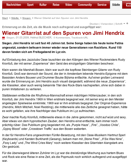 On february 27 2009 we were invited at the Jazzclub Oase in Siegen/Germany. It was a night dedicated to Jimi Hendrix and we played for almost two and a half hours. Hans Kops made these fotos below.